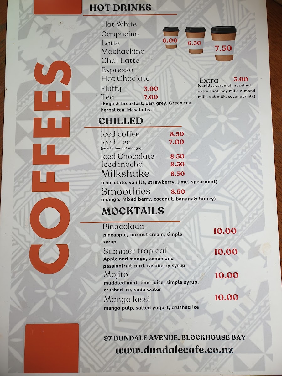 Dundale's Fusion Fijian Cafe & Eatery Menu